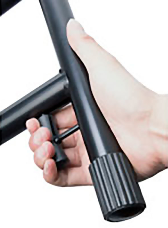 Удобная и надежная стойка с ручным триггером Quick-Draw. Имеет утяжеленную прочную конструкцию, шесть положений высоты и ширины расстановки опор, регулируемые резиновые наконечники на базе для стабилизации стойки на неровной поверхности.