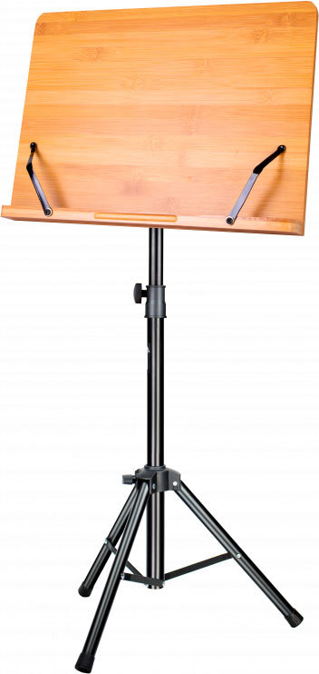 Пюпитр оркестровый с деревянной подставкой. Высота 80-150 см, размер подставки 39 х 28 см, закругленные углы. Размеры в сложенном виде: 44 х 12 х 26 см.