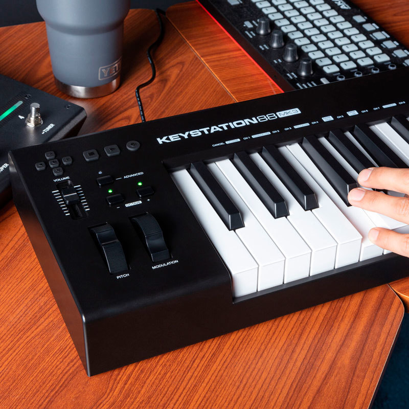 Компактный, легкий и прочный, Keystation 88 MK3 идеально подходит для путешествующих музыкантов, которые хотят взять на себя управление программным обеспечением во время живых выступлений, или для продюсеров, которые хотят добавить интуитивно понятный MIDI-контроллер с естественным ощущением клавиатуры в свою студию.