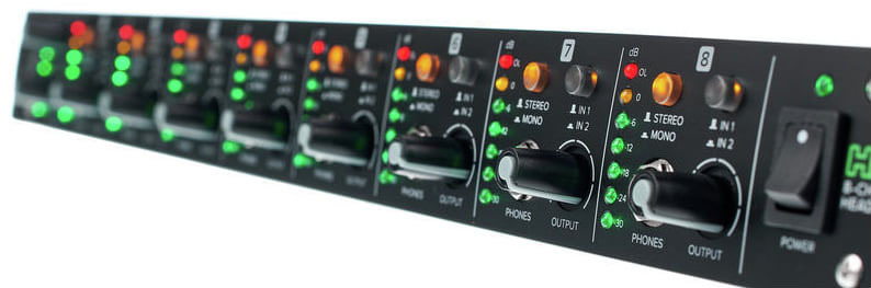 Основные характеристикиПроизводительMackieСтрана производстваКитай Срок гарантии12 месяцев Число каналов8 MACKIE HM-800 8-канальный предусилитель для наушников