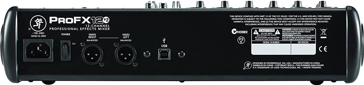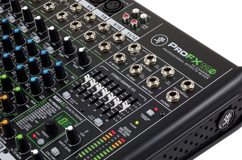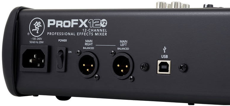 В дополнение к микрофонным входам, ProFX12v2 включает в себя 12 линейных входов для подключения клавиатур, сэмплеров и других акссесуаров и оборудования. Существует также вход RCA и выход для подключения портативных музыкальных плееров. Кроме того, микшер имеет прочные 60 мм фейдеры для всех входных каналов, возврата и основных мастеров/монитора.