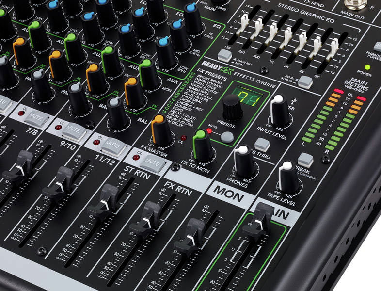 Новая, улучшенная версия широко известной модели микшера от Mackie. Особенностью данной модели является очень широкий функционал. Микшер имеет 6 микрофонных входов и 4 стереопары, есть общий графический эквалайзер, процессор эффектов и выход USB. Качество звучания эквалайзера и процессора эффектов не назвать профессиональным, однако для проведения выездных мероприятий типа корпоративов и проч. эта модель вполне хороша. Из плюсов - неплохие микрофонные преампы. Из недостатков - пластиковый корпус, к сожалению, не добавляющий микшеру надёжности.
