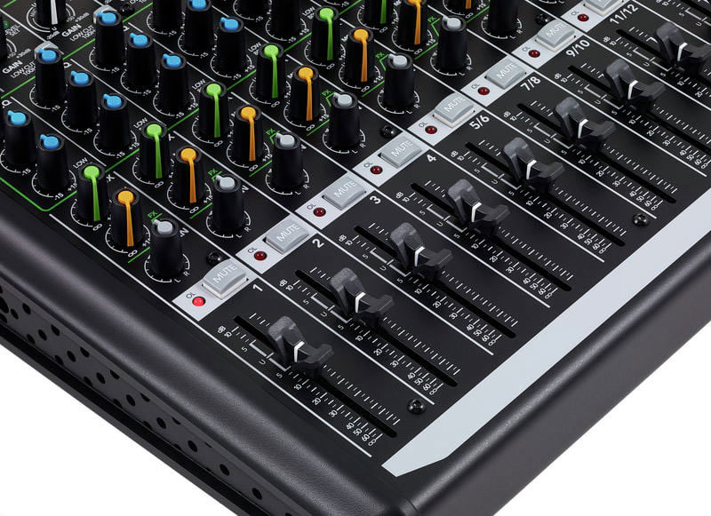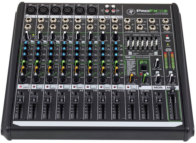 С 6 XLR микрофонными входами с низким уровнем шума микрофонных предусилителей Vita, в каждом канале 3-х полосный эквалайзер, 1 AUX посыл, ProFX12v2 - действительно хороший вариант рабочего пульта.