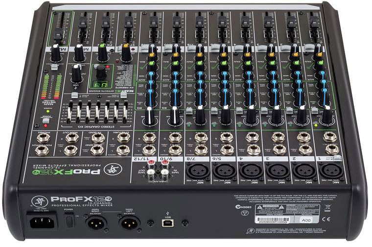 ProFX12v2 предлагает 16 различных эффектов, включая реверберацию, задержки и хоры. Он также имеет графический 7-полосный эквалайзер, который может использоваться для настройки сети или мониторинга, а также встроенный интерфейс USB, который можно использовать для записи шоу или обеспечить воспроизведение музыки через Mac или Windows.