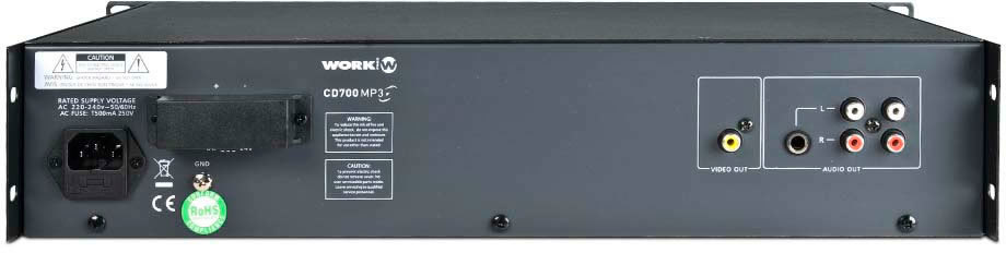 Work CD 700 MP3 аудио плеер для инсталяций, формат файлов VCD, MP3, CD-R и CD, выхода аудио и видео, питание AC 220В или DC 24В, размеры 483х88х370 мм, вес 6,7 кг