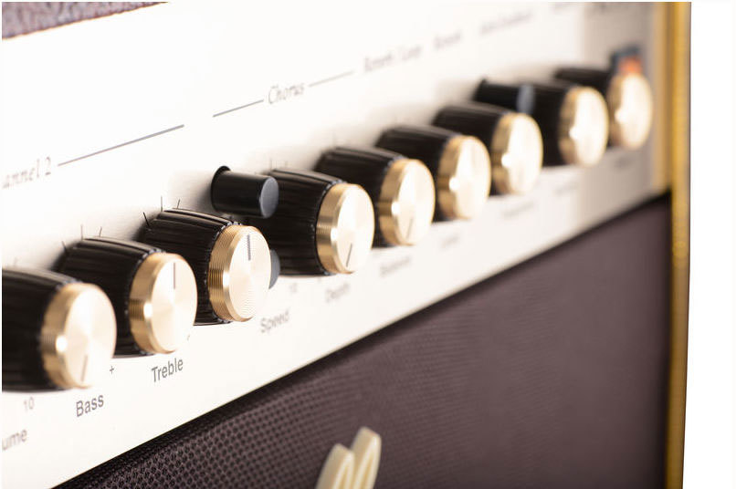Этот 50-ватный усилитель включает в себя два специально разработанных 8" драйвера Celestion и полимерный купольный твитер, чтобы обеспечить ясный и мощный полнодиапозонный звук. Первый канал обеспечивает Hi-Z 1/4" вход, а канал 2 обеспечивает 1/4" инструментальный вход, вход микрофона XLR, и дополнительные входы стерео RCA для инструмента, вокала или усиления бэк-трека. Оба канала предлагают специальный объем, высокие частоты, а также средства управления басами.