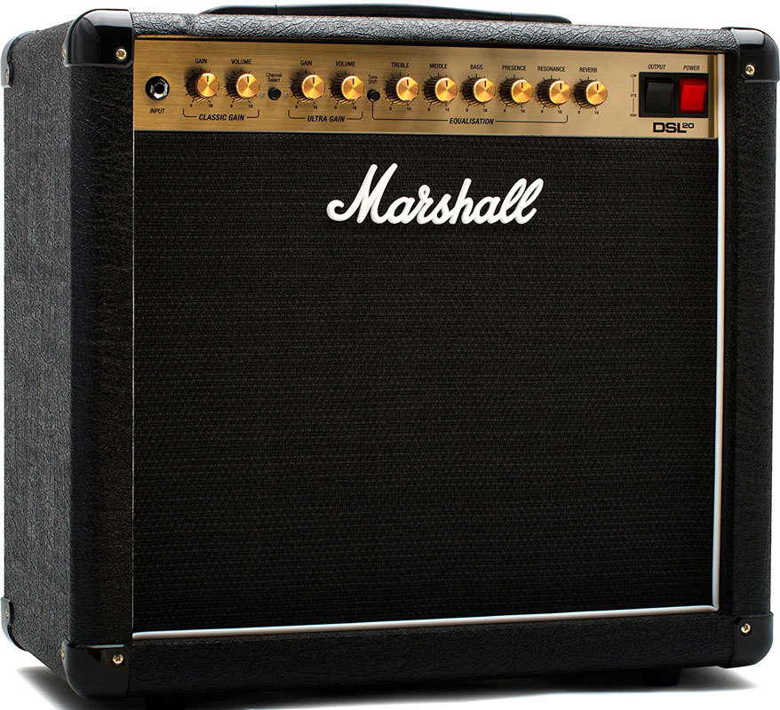 MARSHALL DSL20 COMBO – двухканальный комбоусилитель с 12-дюймовым динамиком Celestion Seventy-80, выдающий великолепный звук и отличающийся гибкостью настроек.