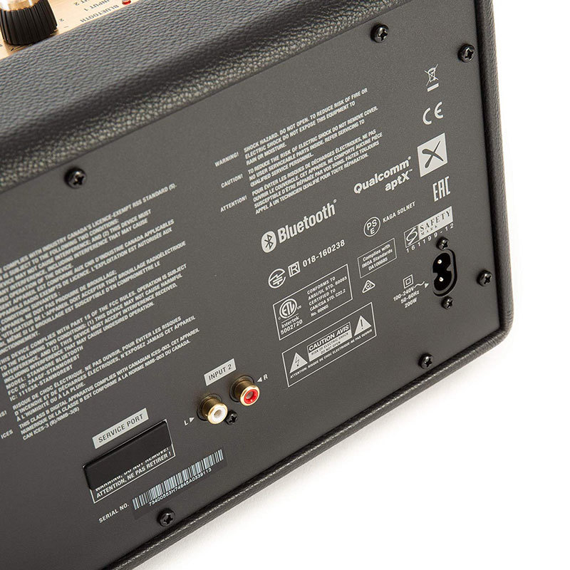 Органы управления находятся на верхней панели корпуса. Аудиосистема имеет прочный корпус и винтажный стиль гитарных усилителей Marshall. Устройство полностью совместимо с мобильными устройствами и планшетами на системах Android и iOS, что дает еще больше возможностей для ее использования.