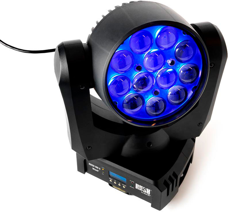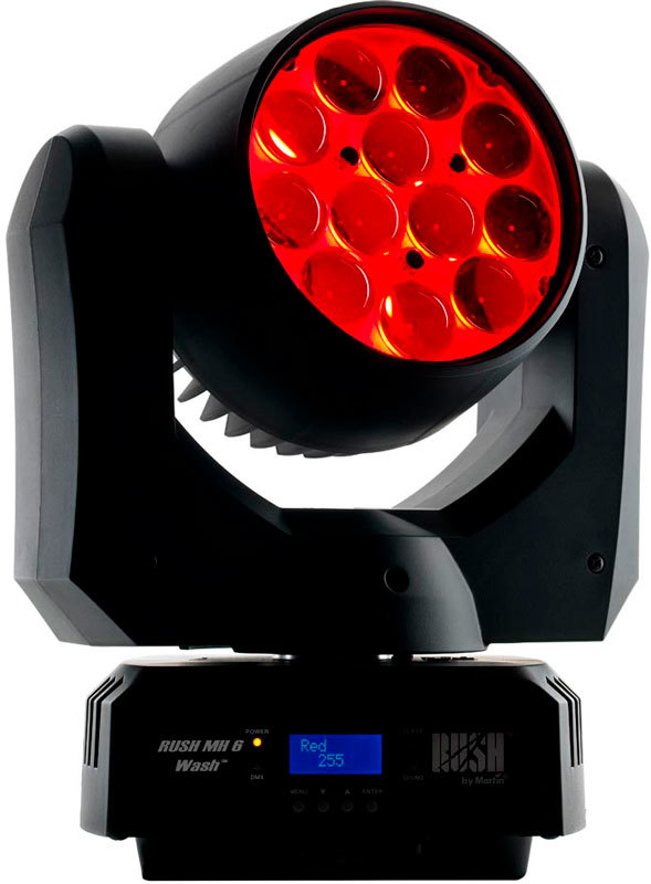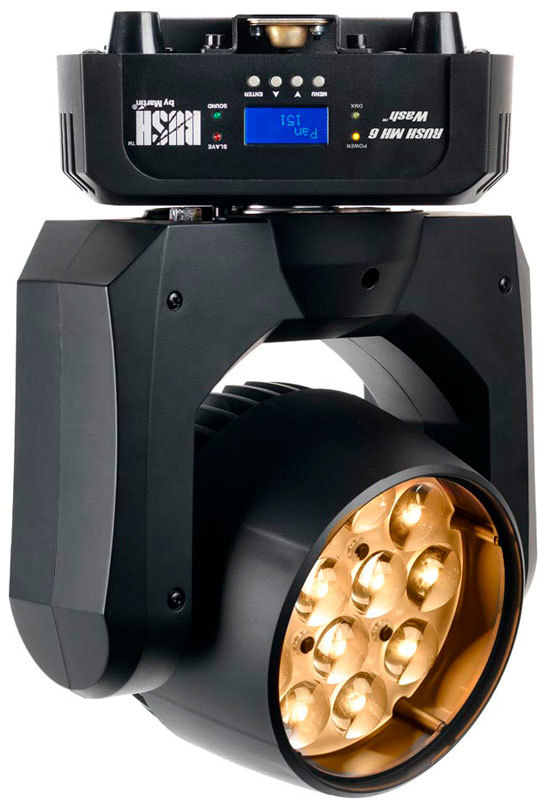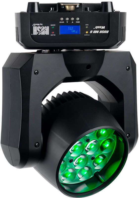 RUSH МН 6 Wash - это адаптированная версия популярного прибора RUSH PAR 2 RGBW Zoom. В новом устройстве используется аналогичный светодиодный движок и зум, плюс добавляется возможность полного вращения «головы». В RUSH MH6 Wash установлен светодиодный массив 12 х 10 Вт с полным предварительным смешением цвета в режиме RGBW и зум с хорошим диапазоном (10° - 60°). RUSH МН 6 Wash предлагает полноценную систему электронного диммирования, стробирующие эффекты и вентиляторы с терморегулятором охлаждения, обеспечивающим бесшумную работу прибора.