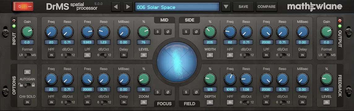 DrMS — это уникальный пространственный процессор, доступный в форматах AAX/AU/VST/VST3, с широким спектром применений для микширования, мастеринга и постпродакшна — от простого MS (Mid-Side) кодирования/декодирования до расширения ширины и глубины стереополя, исправления проблем моно-совместимости и многого другого.