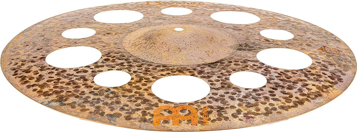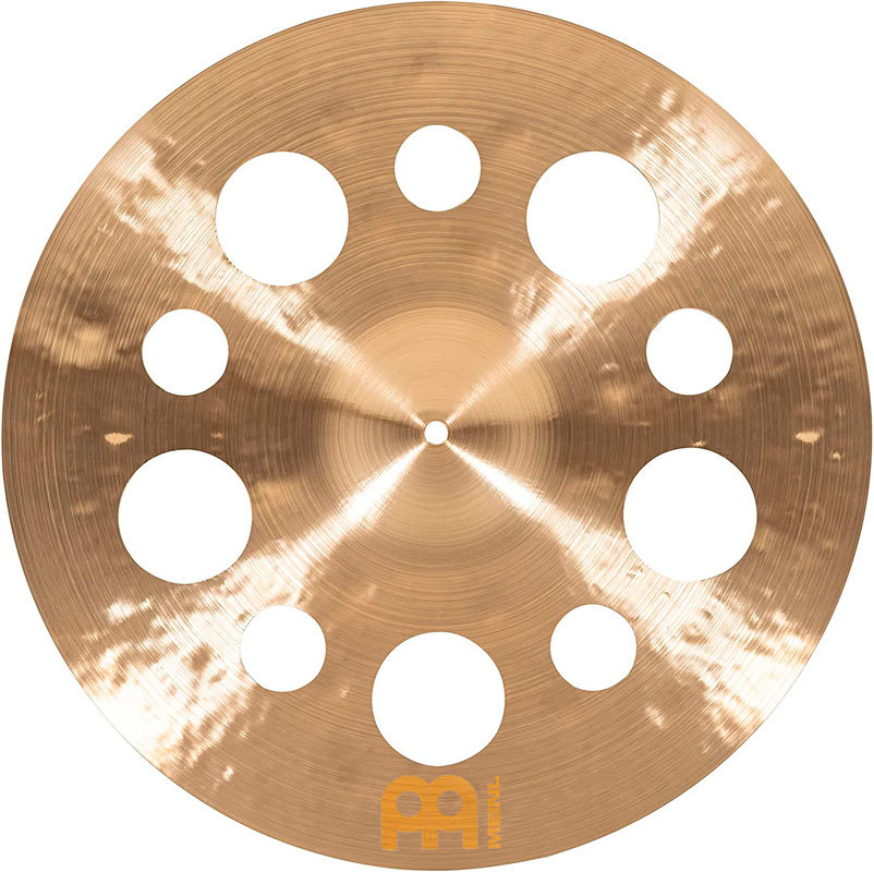 Необработанный верх и полностью выточенный низ в сочетании с отверстиями разного размера позволяют этой уникальной тарелке взрываться быстрым крэшем и сухим коротким сустейном. Низкая высота тона и очень сухой внешний вид делают ее отличной тарелкой для быстрых или треш акцентов.