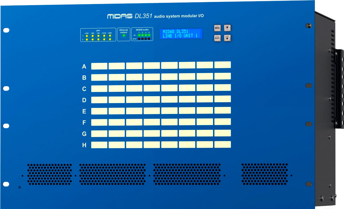 MIDAS DL351 модульный стейдж-бокс, до 64 вх/64 вых, 8 слотов для карт вх/вых, 4 x AES50, 2БП, 7U
