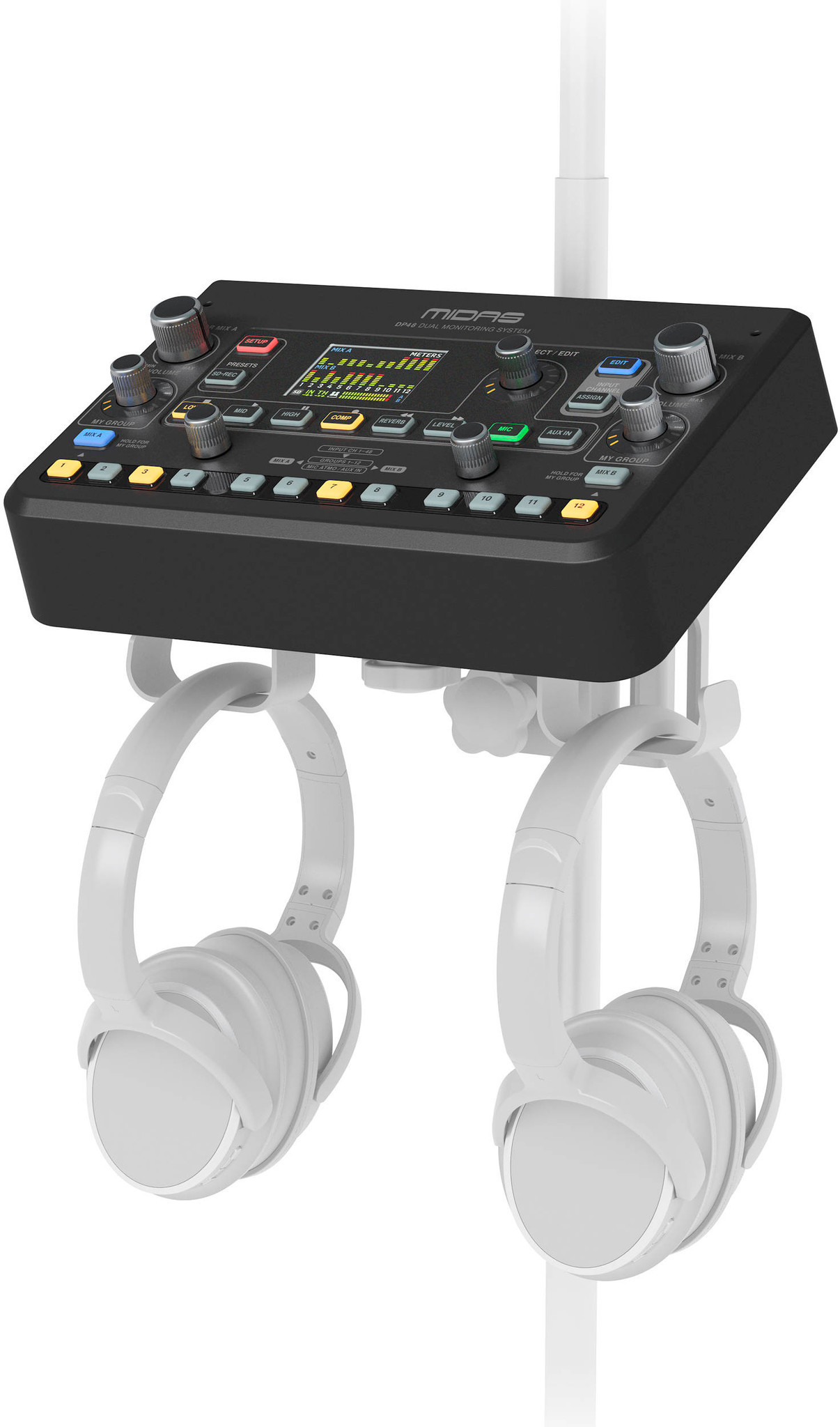 - Монтаж на микрофонную или барабанную стойку с помощью адаптора Midas DP48MB (покупается отдельно)