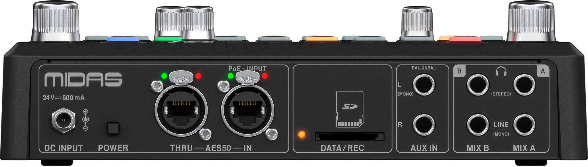 - Возможность питания через AES50 от концентраторов Midas с PoE