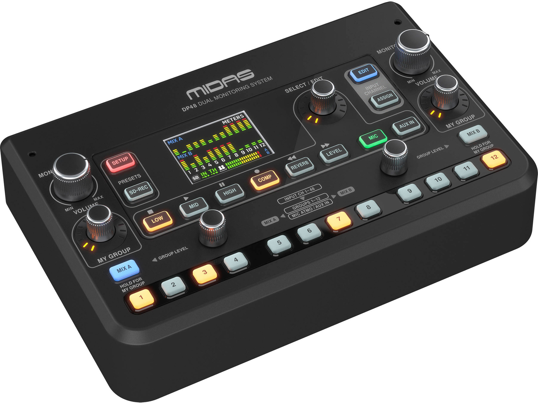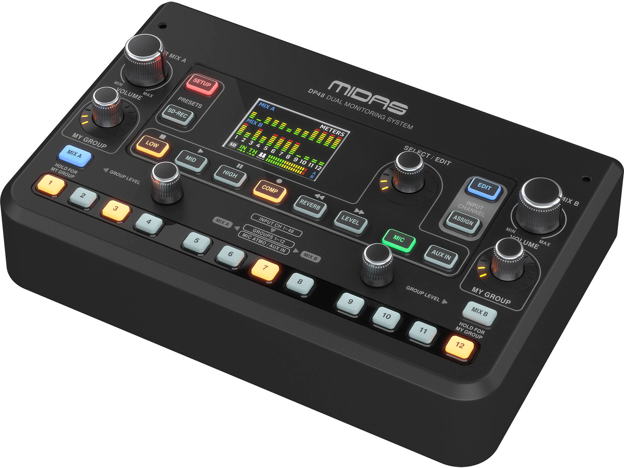 MIDAS DP48 персональный мониторный микшер, 48 каналов, 2 микса, 2 выхода на наушн, AES50 In/Thru, SD-карта, встроенный микрофон окружения