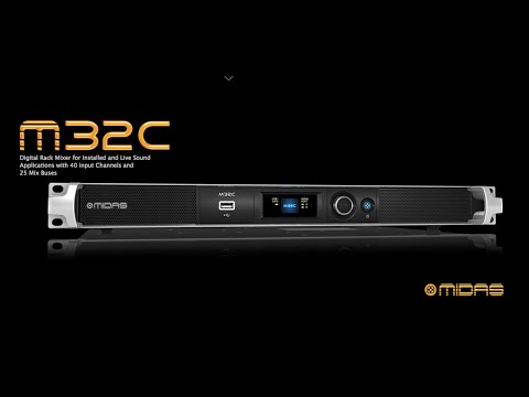 Модель M32C это сверхкомпактная версия, представляющая собой микширующий модуль в рековом корпусе высотой всего 1U. Управление блоком осуществляется по сети и с помощью програмы MIDAS Apps для iPhone и iPad