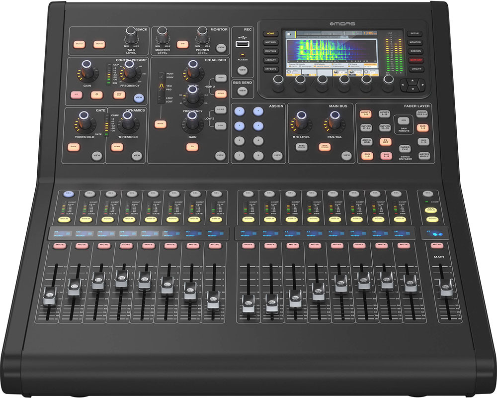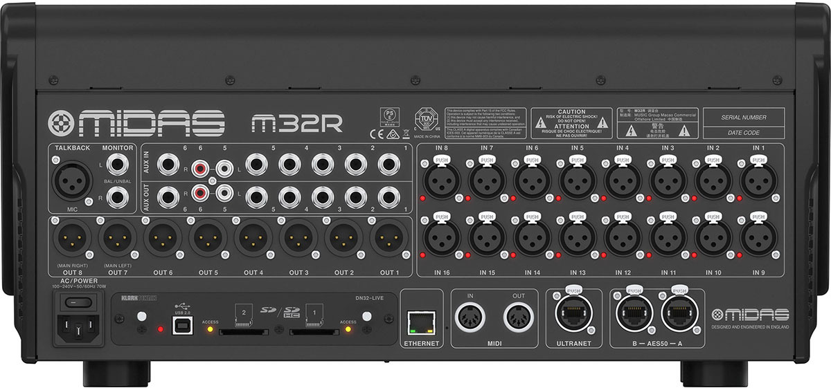 MIDAS M32R LIVE цифровой микшер, 16 микрофонных входов / 8 выходов, 32 канала+8 возвратов, 17 фейдеров, 8 FX, 16 MIX, 6 MATRIX, 6 MUTE, 2xAES50, USB-audio, предустановленная плата DN32-LIVE, рековое крепление в комплекте