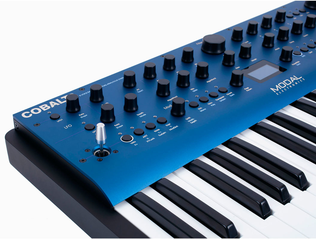 Доступны эффекты LoFi, тремоло, хорус, фэйзер, фленджер, дилей, реверб и пр. Cobalt8 оснащен 37-клавишной полноразмерной клавиатурой Fatar с поддержкой послекасания и MPE. Имеется встроенный пошаговый 512-нотный секвенсор. Он может работать в паре с арпеджиатором с такими функциями исполнения, как инверсия, фиксация сустейна, транспонирование и функция Hold.