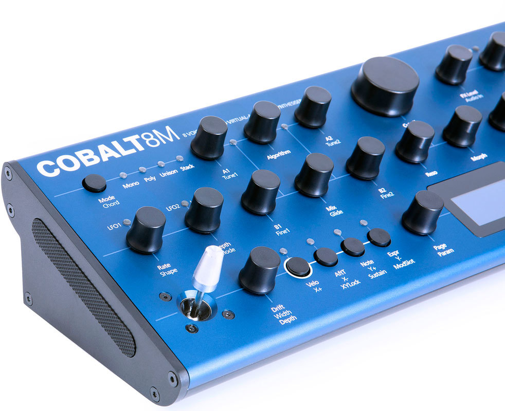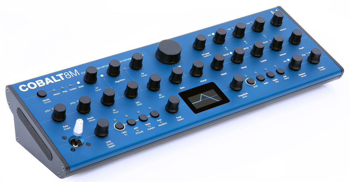 Modal Electronics Cobalt8 - настольная версия гибридного 8-голосного полифонического синтезатора Cobalt8. Тракт состоит из цифровых осцилляторов, 4-контактного лестничного фильтра и секций LFO, огибающих, эффектов и секвенсора. Суммарно доступно 8 голосов полифонии и до 64 осцилляторов.