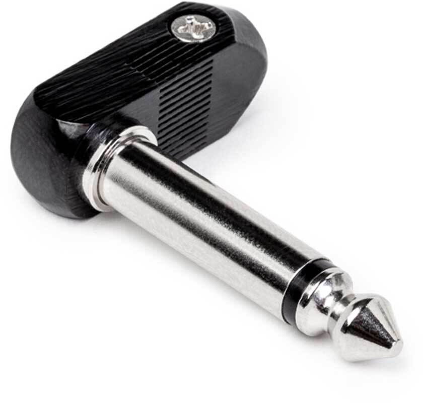MRC R63SL40G-P2R-BAG Кабельный разъем 1/4" Jack 6.35 мм, угловой, 2-х контактный (моно) <штекер/папа>, черный металлический корпус, контакты - покрытие никель, терминирование без пайки, на кабель диаметром до 4.0 мм, разработанно для использования с "педалями"