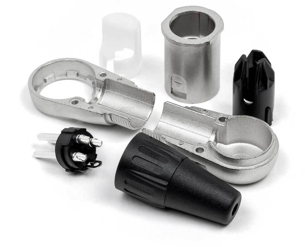 MRC RXCE-3MR Кабельный разъем XLR, 3-х контактный <штекер/папа>, угловой, Е-серия, 5 положений вывода кабеля, металлический никелированный корпус, контакты - покрытие серебро, под пайку, полиуретановый колпачок на кабель диаметром (3.5-8.0 мм)