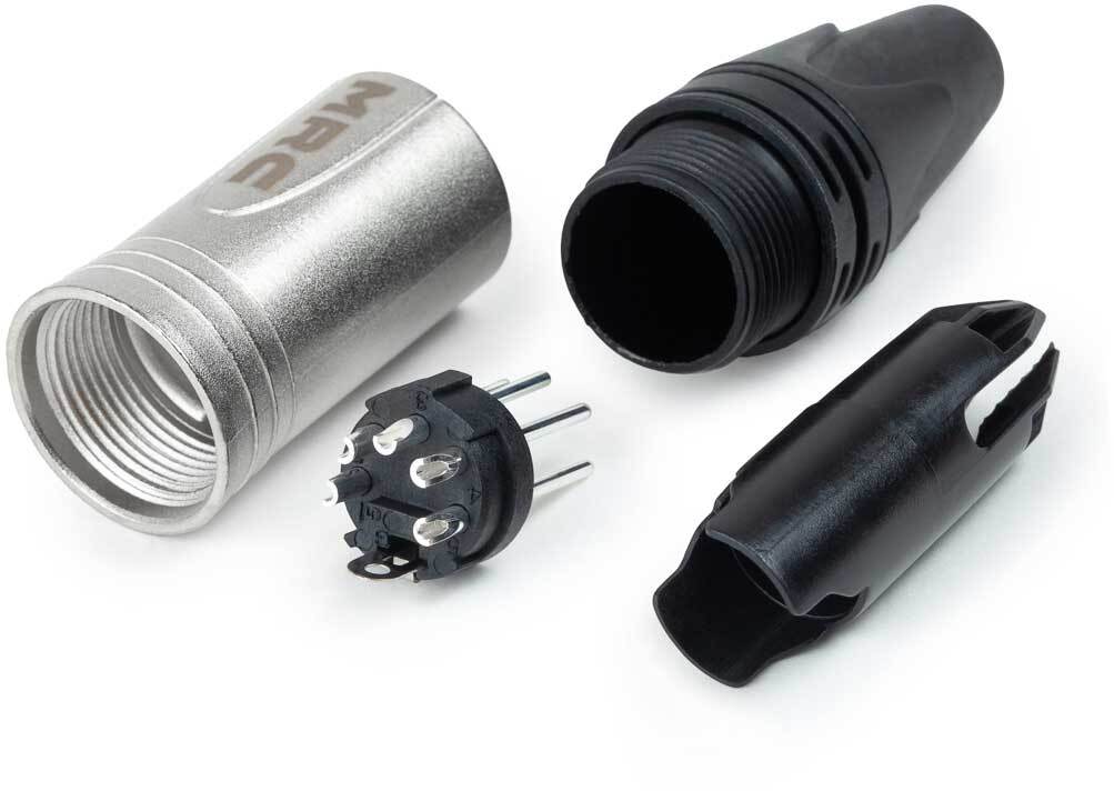 MRC RXCX-5M Кабельный разъем XLR, 5-и контактный <штекер/папа>, X-серия, металлический никелированный корпус, контакты - покрытие серебро, под пайку, зажимной патрон, пластиковый колпачок на кабель диаметром (3.0-8.0 мм)