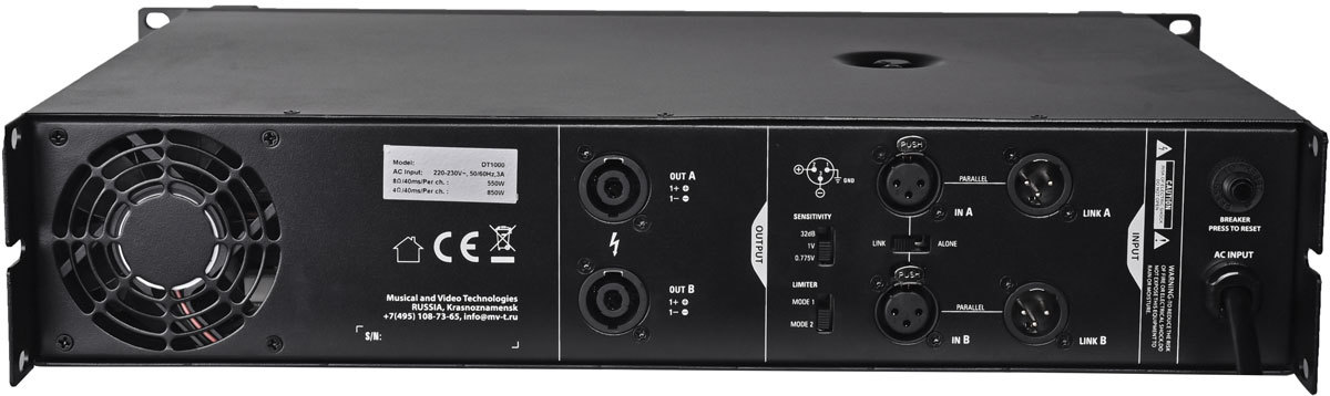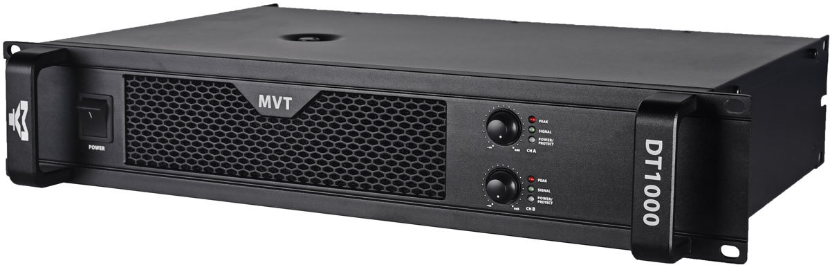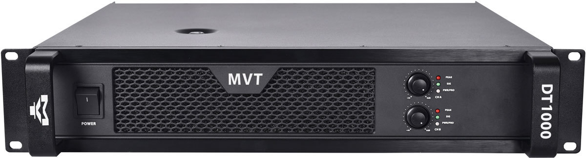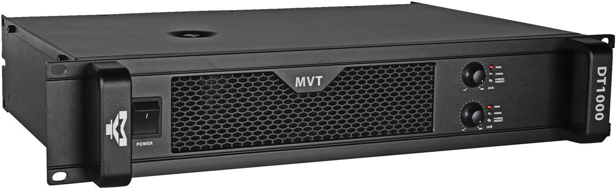 MVT DT1000 - Усилитель мощности класса D, 2-канальный. Эффективная система охлаждения; стабилизированный (трансформаторный) блок питания повышает надежность работы при перепадах напряжения.