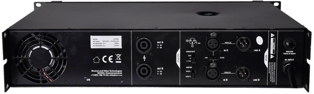 MVT DT4000 - Усилитель мощности класса D, 2-канальный. Эффективная система охлаждения; стабилизированный (трансформаторный) блок питания повышает надежность работы при перепадах напряжения.