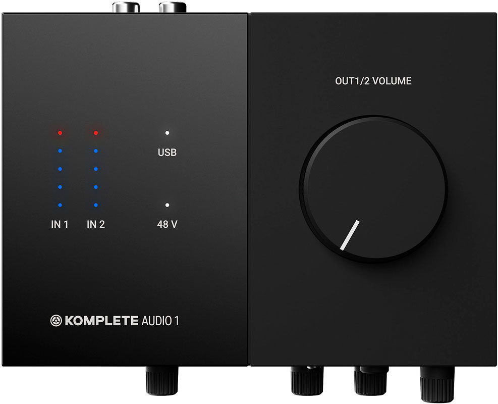 Аудиоинтерфейс Native Instruments Komplete Audio 1 имеет 1 микрофонный вход XLR и 1 разъем Jack для подключения музыкальных инструментов. Его выходы представлены стереопарой RCA для подключения к Hi-Fi динамикам и разъемом для наушников с отдельным регулятором уровня.