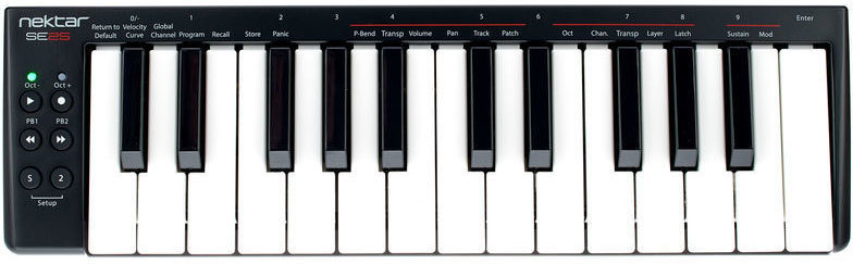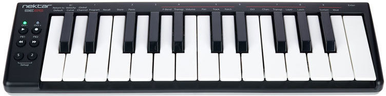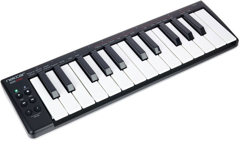 Nektar SE25 – ультракомпактная USB MIDI-клавиатура с 25 мини-клавишами, которая представляет все возможности для создания музыки в мобильных условиях. Модель имеет 25 миниатюрных клавиш с чувствительностью к скорости нажатия.
