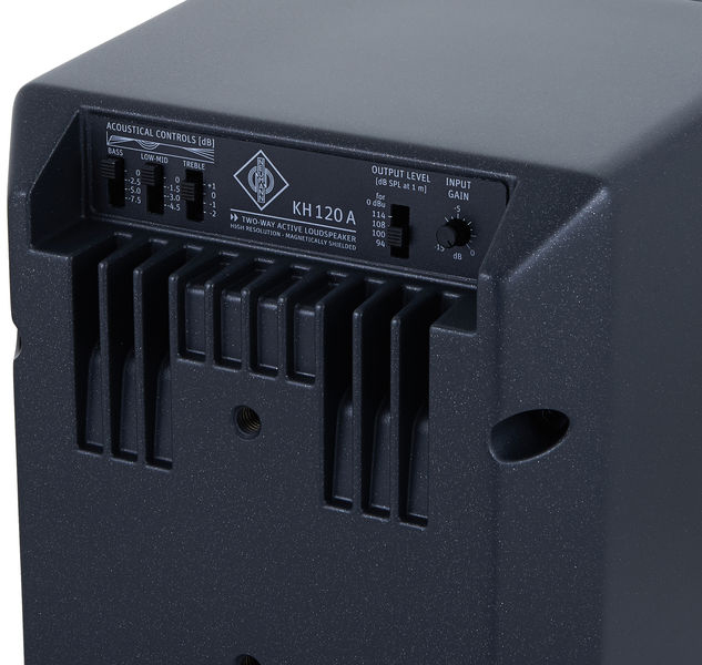 KH 120 A прекрасно подойдет для микширования и мастеринга, трансляций и пост-продакшна. Монитор оснащён аналоговыми усилителями класса АВ мощностью 50 Ватт каждый (пиковая – до 80 Вт). Он заключен в компактный корпус эргономичной обтекаемой формы из алюминия, окрашенный в стильный цвет «антрацит» предусмотрено надёжное магнитное экранирование, что позволяет минимизировать резонанс.