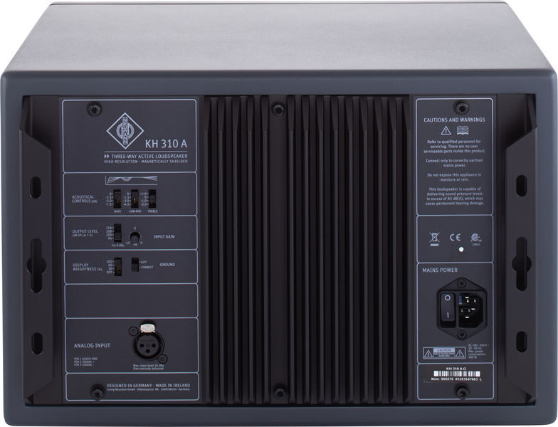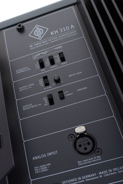 KH 310 - это трехполосный монитор с тремя усилителями класса AB (210 Вт и два по 90 Вт) с защитой от перегрева. Волновод с математически моделированной дисперсией (MMD - Mathematically Modeled Dispersion) доставляет звуковые волны в помещение с превосходной точностью. Драйверы смоделированы с использованием программного обеспечения собственной разработки Neumann, которое снижает нелинейные искажения в любой ситуации. Точное распределение звука по горизонтали обеспечивает гибкость положения слушателя; более узкая вертикальная дисперсия снижает негативное влияние ближайших отражений - например, от стола или микшерного пульта. Точно регулируемые характеристики рассеивания оптимизируют воспроизведение в самых разных помещениях, а отклик адаптируется с помощью различных настроек акустического контроля.