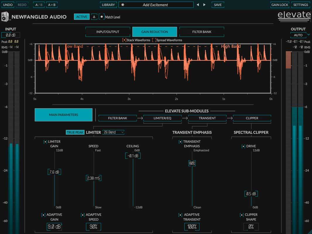 - Многополосная обработка транзиентов на основе Elevate с 26 полосами.