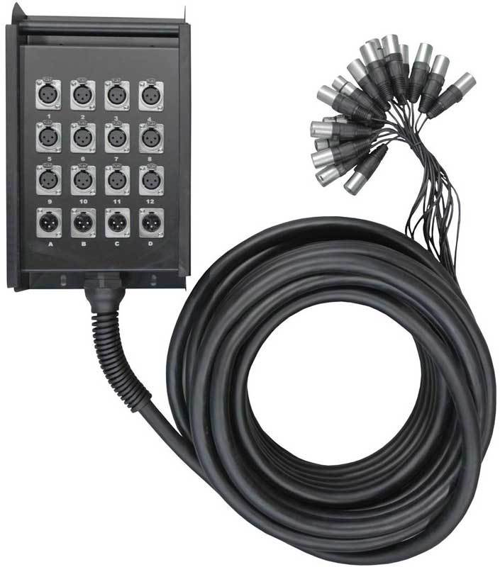 - Мультикабель с раздаточной сценической коробкой 12 входов/4 выхода