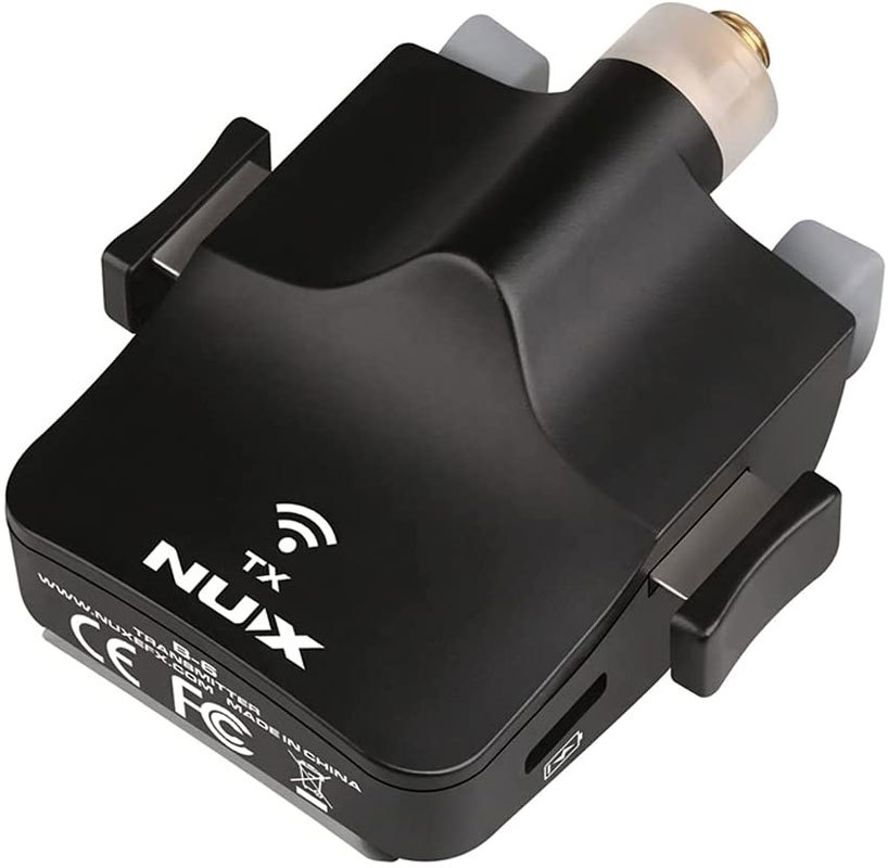 Передатчик NUX B-6 поставляется с гибким, но прочным зажимным механизмом, обернутым резиной. Он надежно крепится к раструбу саксофонов различных типов.
