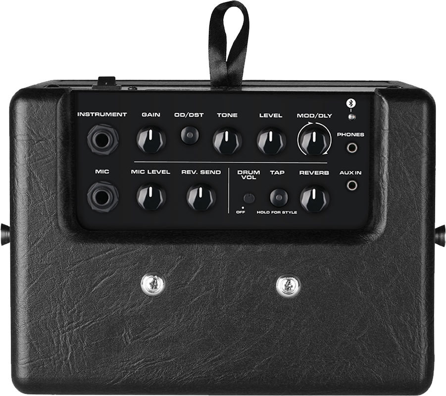 После того, как вы настроите свое звучание, вы можете сохранить его и использовать в любой момент. Комбоусилитель питается с помощью адаптера питания 9 В (входит в комплект) или вы можете использовать 8 батареек размера АА (не входят в комплект), что позволит вам играть в любом месте. Для переноски используйте удобный ремешок, который вы можете легко снять.