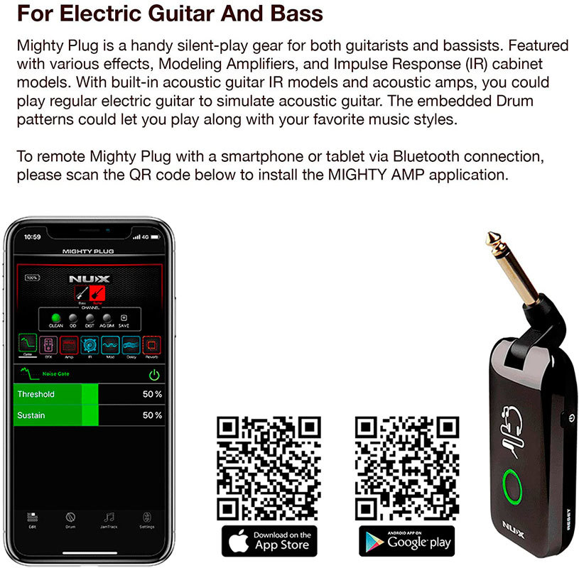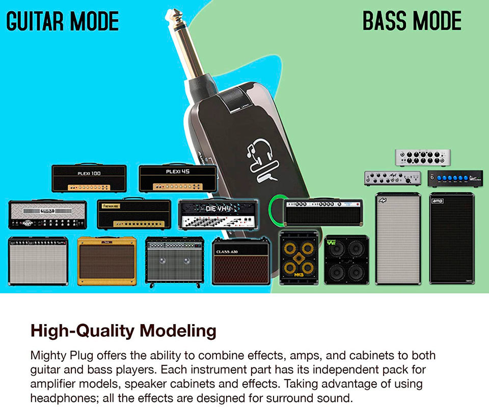 Mighty Plug - это удобное устройство как для гитаристов, так и для басистов, с различными эффектами, моделирующими усилителями и импульсными откликами кабинетов (IR).