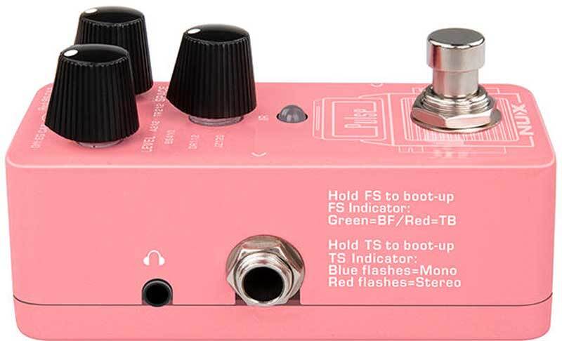 Миниатюрная, но мощная! Педаль также поддерживает стерео вход и выход (используйте кабель TRS 1/4 дюйма и выберите стереофонический режим).