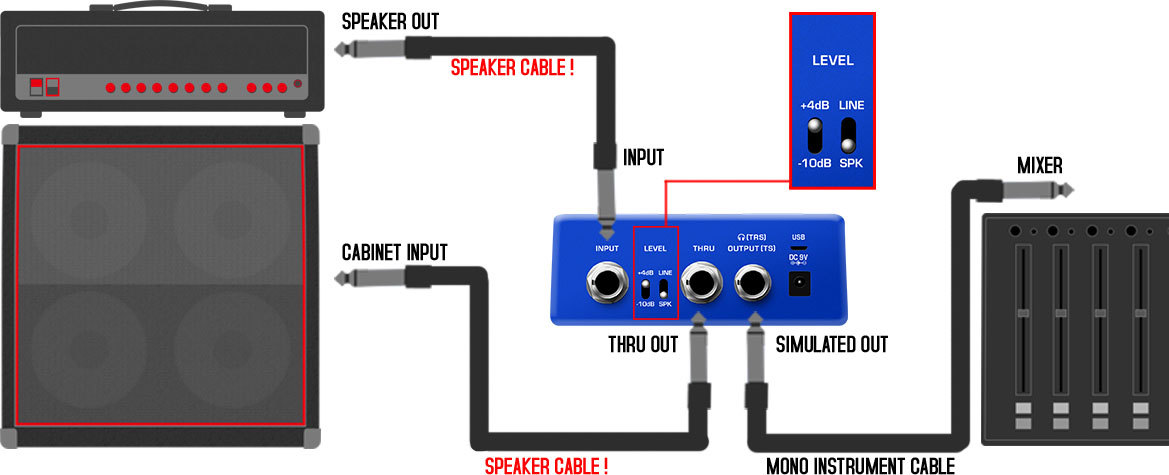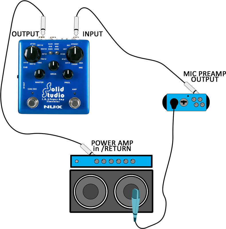 - подключаете "THRU"выход NSS-5 в "голову" кабинета, а на вход NSS-5 подаёте сигнал "снимающего" микрофона с микшерского пульта.