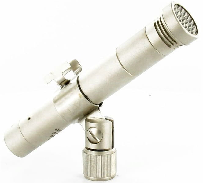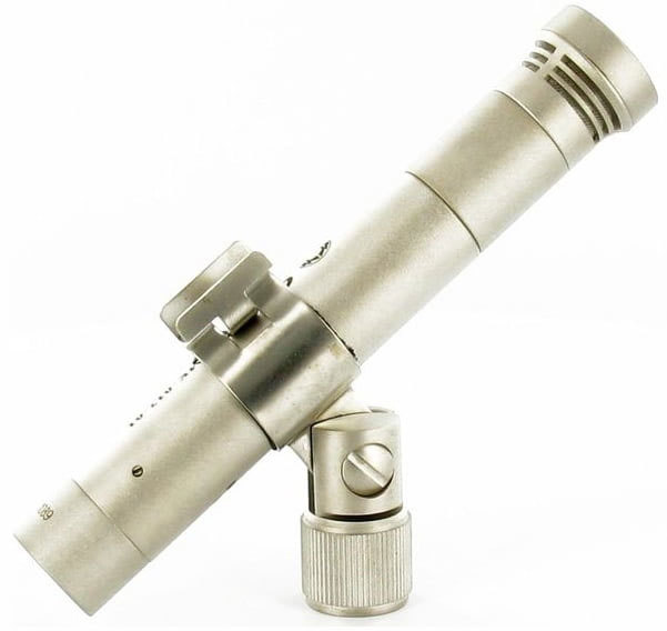 Компактный конденсаторный микрофон с капсюлем кардиоидной направленности, который подключается к предусилителю с помощью шнура с согласующим устройством.