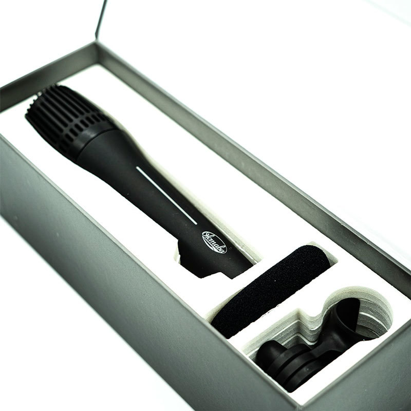 Профессиональный ручной конденсаторный микрофон с кардиоидной характеристикой направленности. Микрофон предназначен для использования на небольших живых выступлениях или крупных концертных площадках. Металлический корпус обладает минимальным уровнем передачи вибраций на капсюль микрофона от рук при использовании.