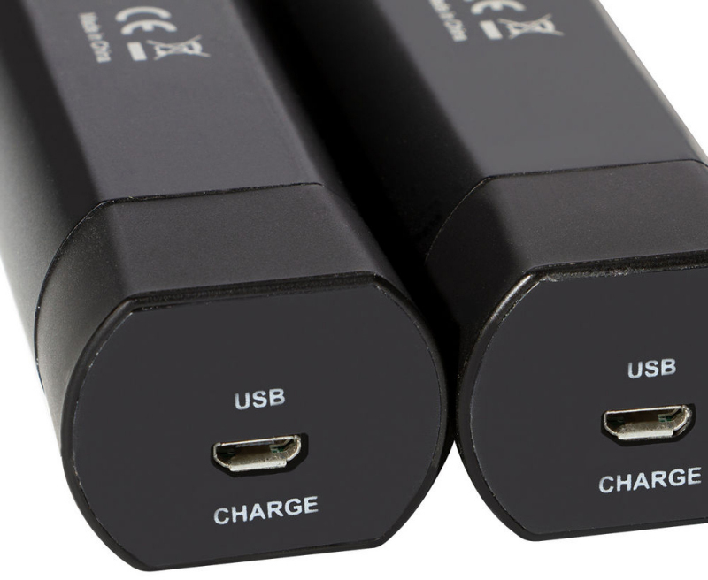- Питание от литиевой батареи 3,7 В в комплекте с USB-кабелем для зарядки