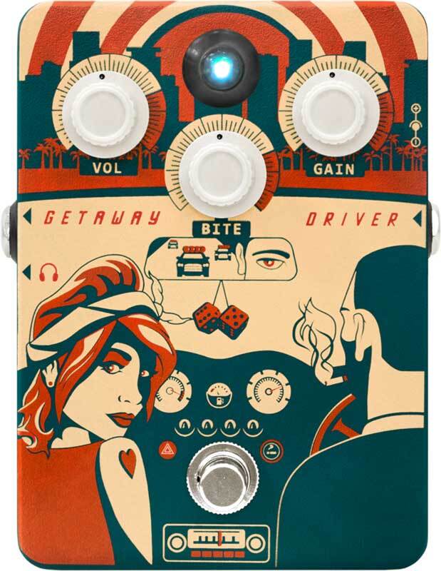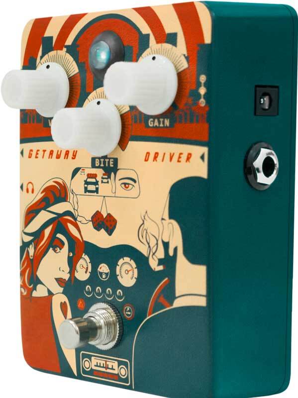 Getaway Driver - это педаль типа "усилитель в коробке" с тремя регуляторами - Volume, Bite (тон) и Gain. Хотя педаль добавляет винтажную вибрацию всем усилителям, лучше всего звучит в чистый канал, даже если это яркий усилок. Педаль является отличным чистым бустом, а низкие настройки Gain и высокие настройки Volume заставляют усилители переходить через грань классического овердрайва.