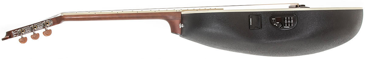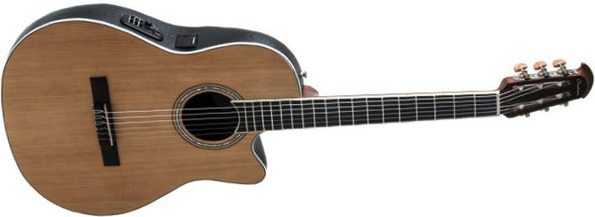 Для приятного чисто акустического звучания здесь предусмотрен массивный кедровый топ. Как и у всех других Ovations, CS24C-4 оснащена звукоснимателем, здесь предусилитель OP4BT выглядит как обычно. В отличие от стандартной классической гитары 4/4, Celebrity оснащена верхним порожком шириной 48 мм, которое особенно подходит для гитаристов, которые больше чувствуют себя как дома на акустической или электрической гитаре.