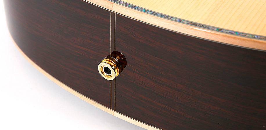 Для верхней деки отбирается только лучшая древесина адирондакской ели, идеальная как по своей фактуре, так и звуковым характеристикам. Массив индийского палисандра в качестве материала для обечаек и задней деки был выбран за его красоту и насыщенное, богатое звучание.