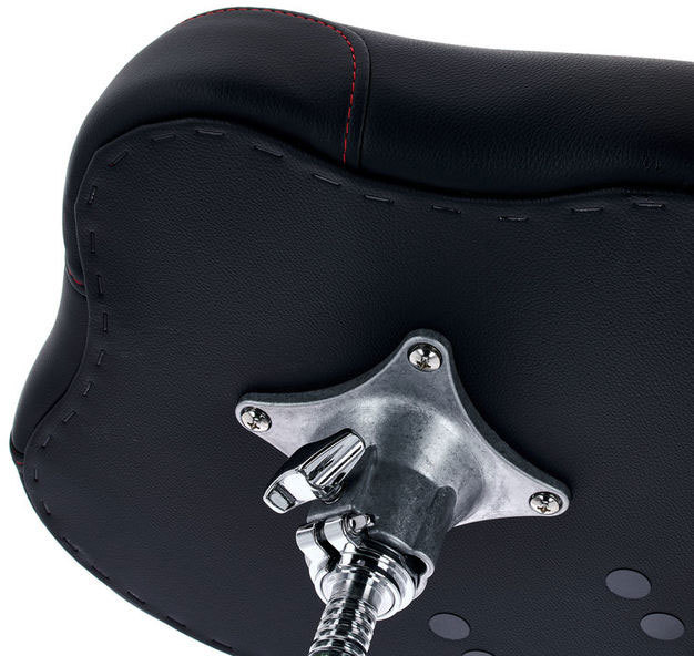 - Специальный переворачиваемый зажим позволяет сиденью либо вращаться, либо быть жёстко зафиксированным, в зависимости от предпочтений барабанщика