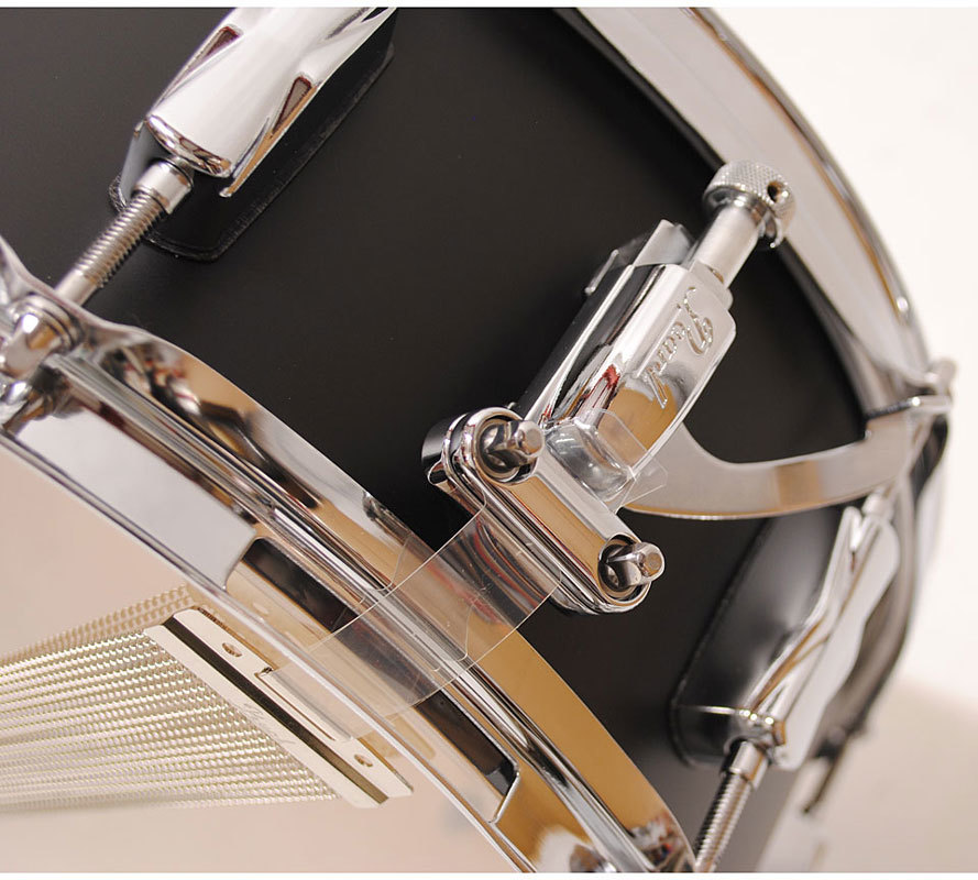 Барабаны имеют штампованные стальные обручи с тройным фланцем, стрейнер (машинка для подструнника) SR700, бриджевые лаги, стальные болты и пластики Remo.