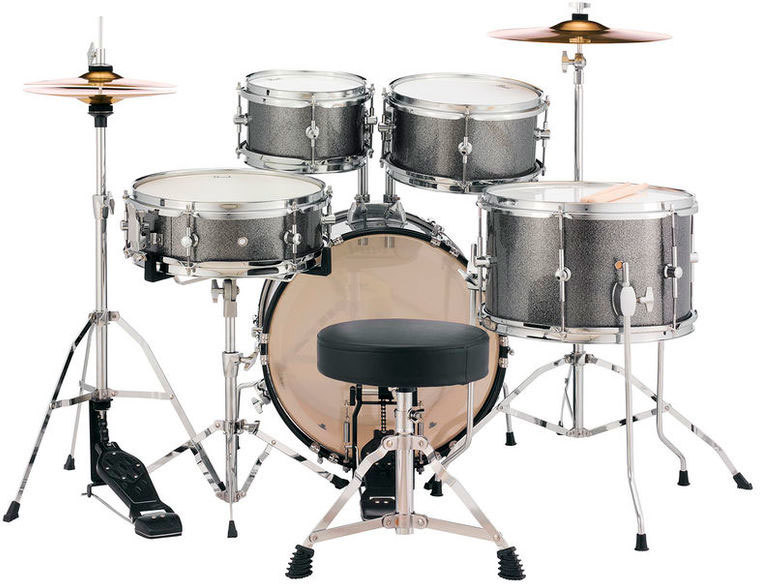 PEARL RSJ465C C708 - ударная установка (уменьшенная). Комплектация: 16 х 10 бас-барабан, 8 х 5 том, 10 х 5,5 том, 12 х 4 малый барабан, 13 х 8 напольный том, стойка для тарелки, Hi-Hat стойка, стойка для малого барабана, педаль, стульчик, 2 держателя тома, барабанные палочки. Тарелки: 13 Brass Crash-Ride, 10 Hybrid Hi-Hats.Ц вет: No.708 Grindstone Sparkle