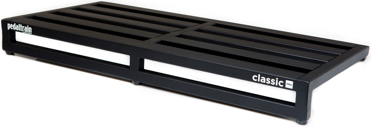 В отличие от младших моделей из серии Classic, Classic PRO сделан на раме из 5 реек, что позволило увеличить доступную площадь без ущерба для надёжности крепления. Усовершенствованная система рамы позволяет теперь закреплять фактически любые блоки питания на днище. Кроме того, был немного увеличен подъём педалборда – примерно на 2,5 см, что делает еще более удобным включение педалей, а также монтаж оборудования и блоков питания на раму. Как и другие педалборды, Classic PRO сделан из высокопрочного и суперлёгкого алюминия.