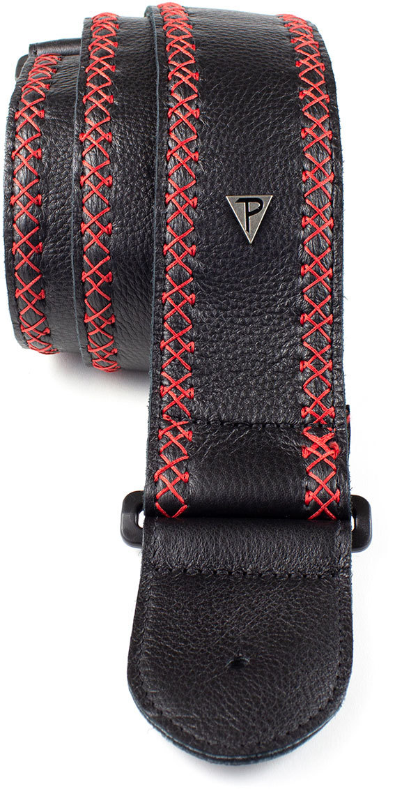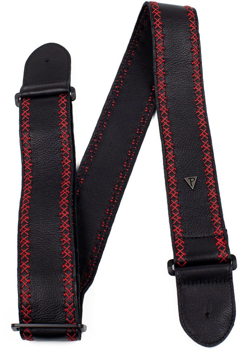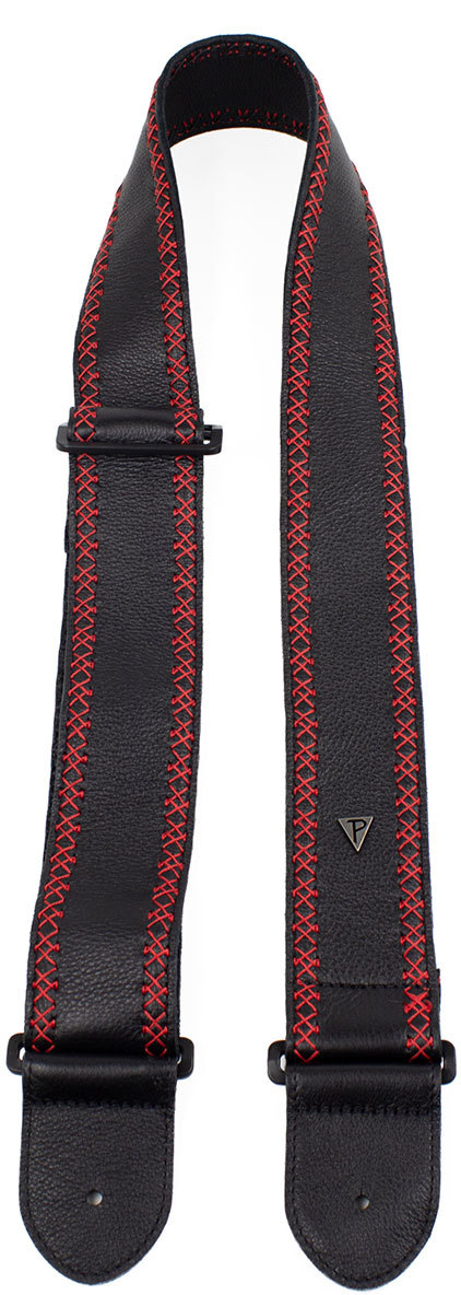 Мягкая черная перчаточная кожа 2,5″ сверху и сзади с красным фантазийным узором. Регулируемая длина от 35″ до 61,5″
